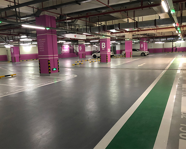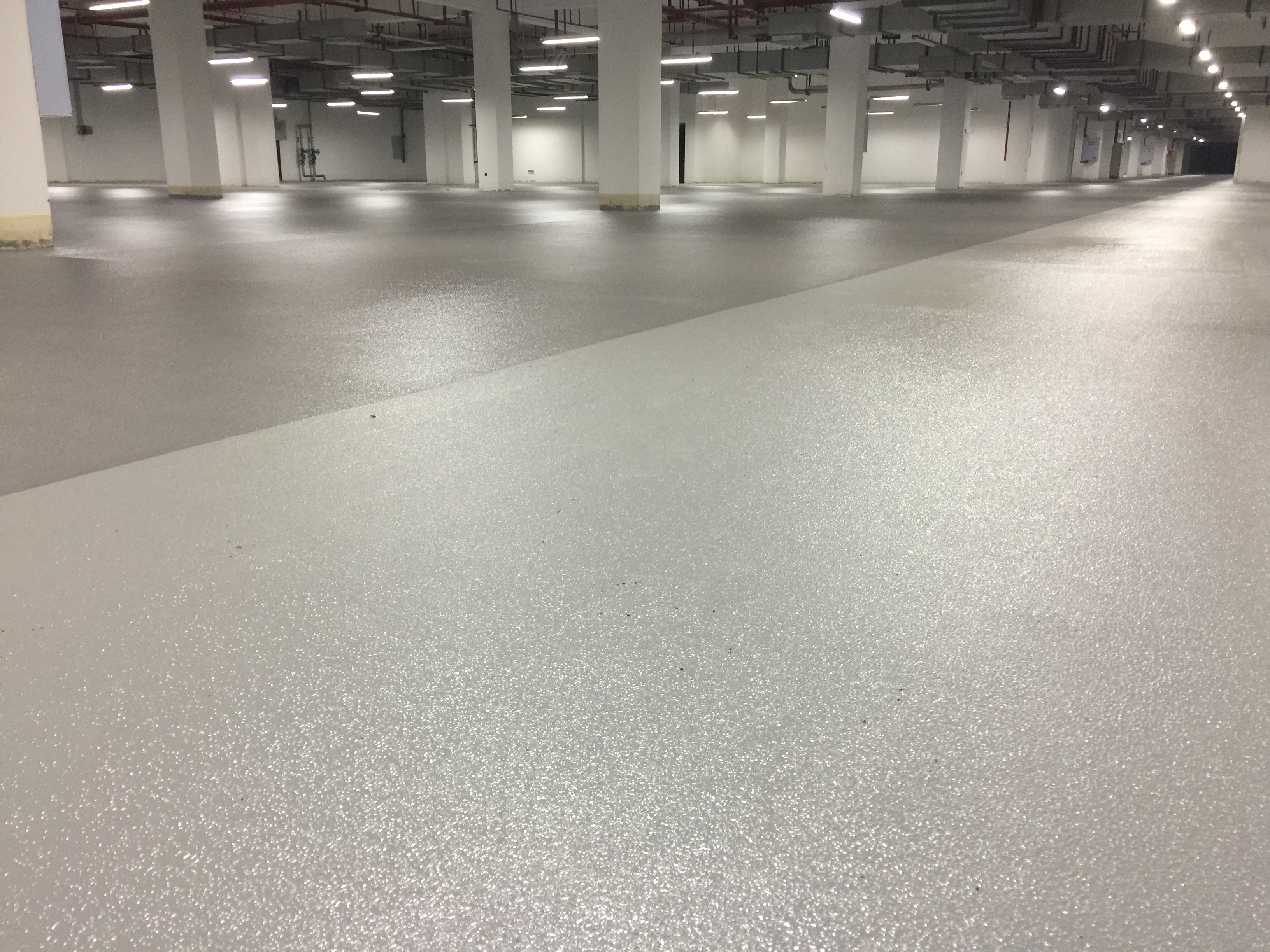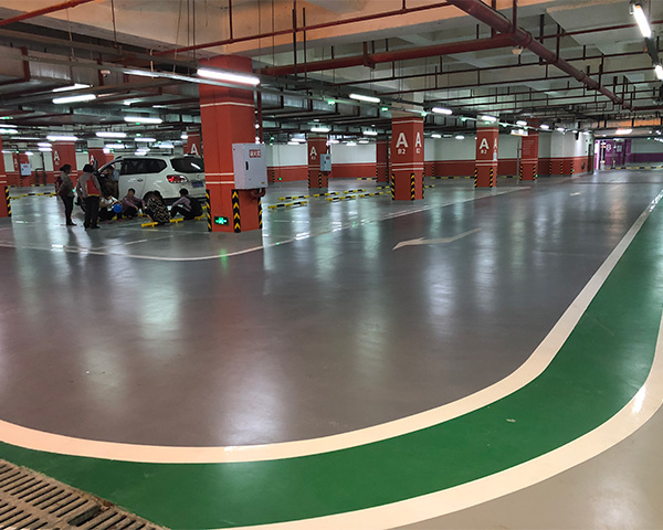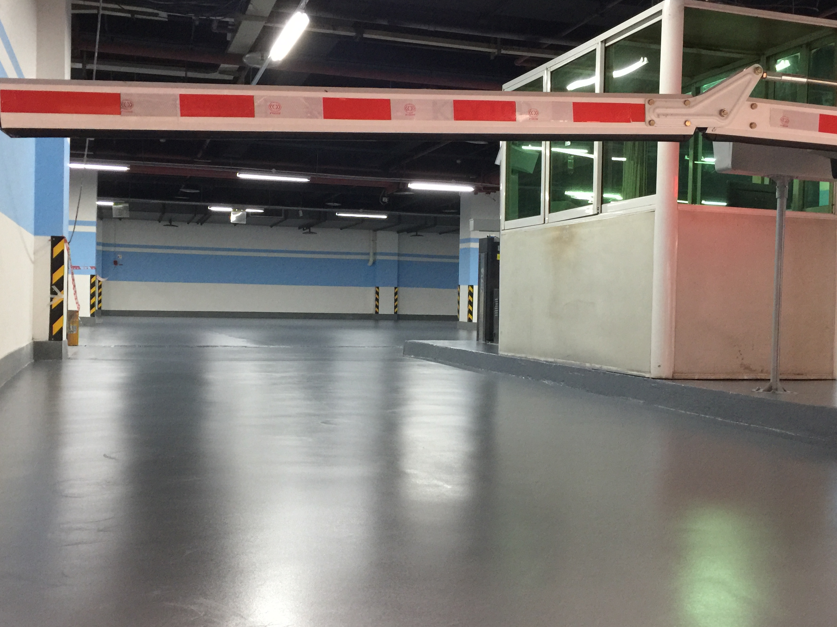 重庆华融广场地下车库:吴无溶剂环氧自流平+高耐磨聚氨酯罩面系统